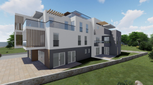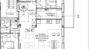 SJ8 - second and third floor - 183,74 m2. Consists of 3 bedrooms, hall, 2 bathrooms, living room, kitchen, dining room, terrace of 30,56m2, terrace of 17,82 m2 and roof terrace of 98,74 m2.