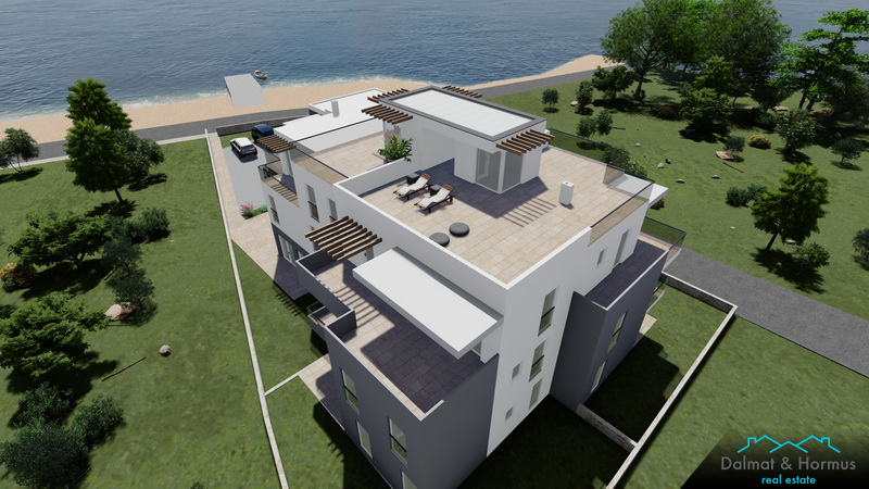 SRIMA - NEW BUILDING - LUXURY TWO STORY APARTMENT FIRST ROW TO THE SEA! Located in an attractive location near the beach and all essential facilities. Top quality is visible in the choice of materials and built-in equipment. The distance to the sea is 10 m.