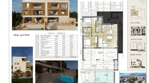 S1 - ground floor - 128,40 m2. Consists of 2 bedrooms, 2 bathrooms, living room, kitchen, dining room, loggia of 28,59 m2, terrace with pool of 51,75 m2, garden of 9,28 m2, storage, garage and outdoor parking space.