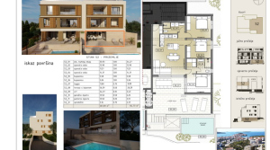 The pearl of the Adriatic Sea, Primošten will become richer for an extremely attractive property that will be located on a gentle hill with a view of the sea and islands. They are situated near the beach and all necessary facilities. Top quality will be visible in the choice of construction materials as well as in the built-in equipment, which includes underground garages and elevators. The apartments on the ground floor have outdoor pools on the terrace, apartments on the first floor have hydro-massage tubs on the terraces, and the penthouse has a Jacuzzi, sauna and a private garage for two cars. There are 7 apartments in the building. Each apartment has a beautiful view of the sea, burglar-proof entrance doors, high-quality aluminium carpentry with electric blinds, underfloor heating with a heat pump, suspended ceilings with built-in air conditioners, glass fences on the terraces, barbecue, garage and outdoor parking space and storage in the basement of the building. The entire building has video surveillance. Proximity to the sea is 400 m.