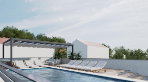 ŠIBENIK - ŽABORIĆ - NEW CONSTRUCTION - LUXURY THREE-ROOM APARTMENT WITH SEA VIEW! It is situated in an attractive location near all essential facilities. Top quality will be visible in the choice of materials in the construction as well as in the built-in equipment, which includes aluminium joinery, mosquito nets, electric shutter lifters, interior doors with hidden fittings, preparation for underfloor heating and air conditioning in all rooms and the living room. The apartment has a garage on the ground floor of the building. The distance to the sea is