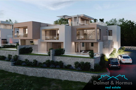 VODICE - NEW BUILDING! A beautiful house in a row, situated in an attractive location near all essential facilities. It will be built from quality and durable materials, and the interior will be spacious and full of light. It consists of a ground floor and a first floor with a total area of 168,08 m2. It has a beautifully landscaped yard of 79,32 m2 with a 15 m2 swimming pool and a parking space. The distance to the sea is 700 m.
