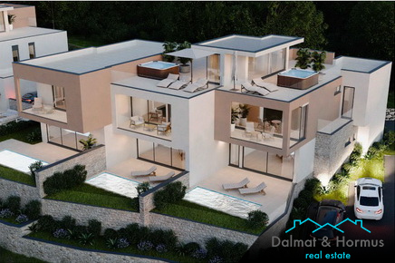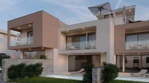 VODICE - NEW BUILDING! A beautiful house in a row, situated in an attractive location near all essential facilities. It will be built from quality and durable materials, and the interior will be spacious and full of light. It consists of a ground floor, first floor and a roof terrace with a panoramic sea view, total area of 204,04 m2. It has a beautifully landscaped yard of 87,31 m2 with a garden, sun deck, heated pool of 15 m2 and 2 parking spaces. The distance to the sea is 700 m.