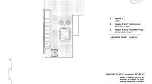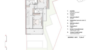 First floor - 71,04 m2 - consists of a hallway, 2 bedrooms, 2 bathrooms, covered terrace of 10,67 m2 and uncovered terrace of 4,60 m2.