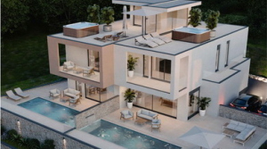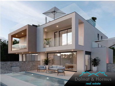 VODICE - NEW BUILDING! A beautiful semi - detached house situated in an attractive location near all essential facilities. It will be built from quality and durable materials, and the interior will be spacious and full of light. It consists of a ground floor, first floor and a roof terrace with a panoramic sea view, total area of 217,90 m2. It has a beautifully landscaped yard of 105,97 m2 with a garden, sun deck, heated pool of 22 m2 and 2 parking spaces. The distance to the sea is 700 m.