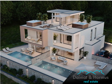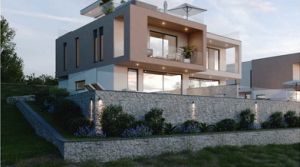 VODICE - NEW BUILDING! A beautiful semi - detached house situated in an attractive location near all essential facilities. It will be built from quality and durable materials, and the interior will be spacious and full of light. It consists of a ground floor, first floor and a roof terrace with a panoramic sea view, total area of 224,73 m2. It has a beautifully landscaped yard of 125,26 m2 with a garden, sun deck, heated pool of 22 m2 and parking space. The distance to the sea is 700 m.