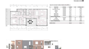S4 - drugi kat - 96,85 m2. Sastoji se od ulaza, hodnika, 2 kupaonice, 3 spavaće sobe, kuhinje, blagovaonice, dnevnog boravka, lođe od 13,57 m2, parkirnog mjesta i dvorišta od 10,48 m2.