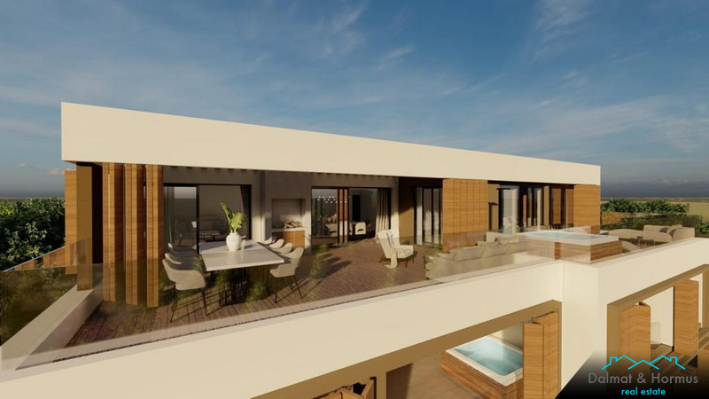 Biser Jadranskog mora, Primošten postat će bogatiji za jednu izuzetno atraktivnu nekretninu koja će se smjestiti na blagoj uzvisini s koje puca pogled na more i otoke. Nalaze se u blizini plaže i svih bitnih sadržaja. Vrhunska kvaliteta bit će vidljiva prilikom izbora materijala u gradnji kao i u ugrađenoj opremi koja uključuje podzemne garaže i liftove. Apartmani u prizemlju imaju vanjske bazene na terasi, apartmani na katu imaju hidromasažne kade na terasama, a penthouse ima jacuzzi, saunu i privatnu garažu za dva automobila. U zgradi je ukupno 7 apartmana. Svaki apartman ima prekrasan pogled na more, protuprovalna ulazna vrata, vrhunsku alu-stolariju s električnim roletama, podno grijanje s dizalicom topline, spuštene stropove s ugrađenim klimama, staklene ograde na terasama, roštilj, garažno i vanjsko parkirno mjesto i spremište u podrumu zgrade. Cijela zgrada ima video nadzor. Udaljenost do mora je 400 m.